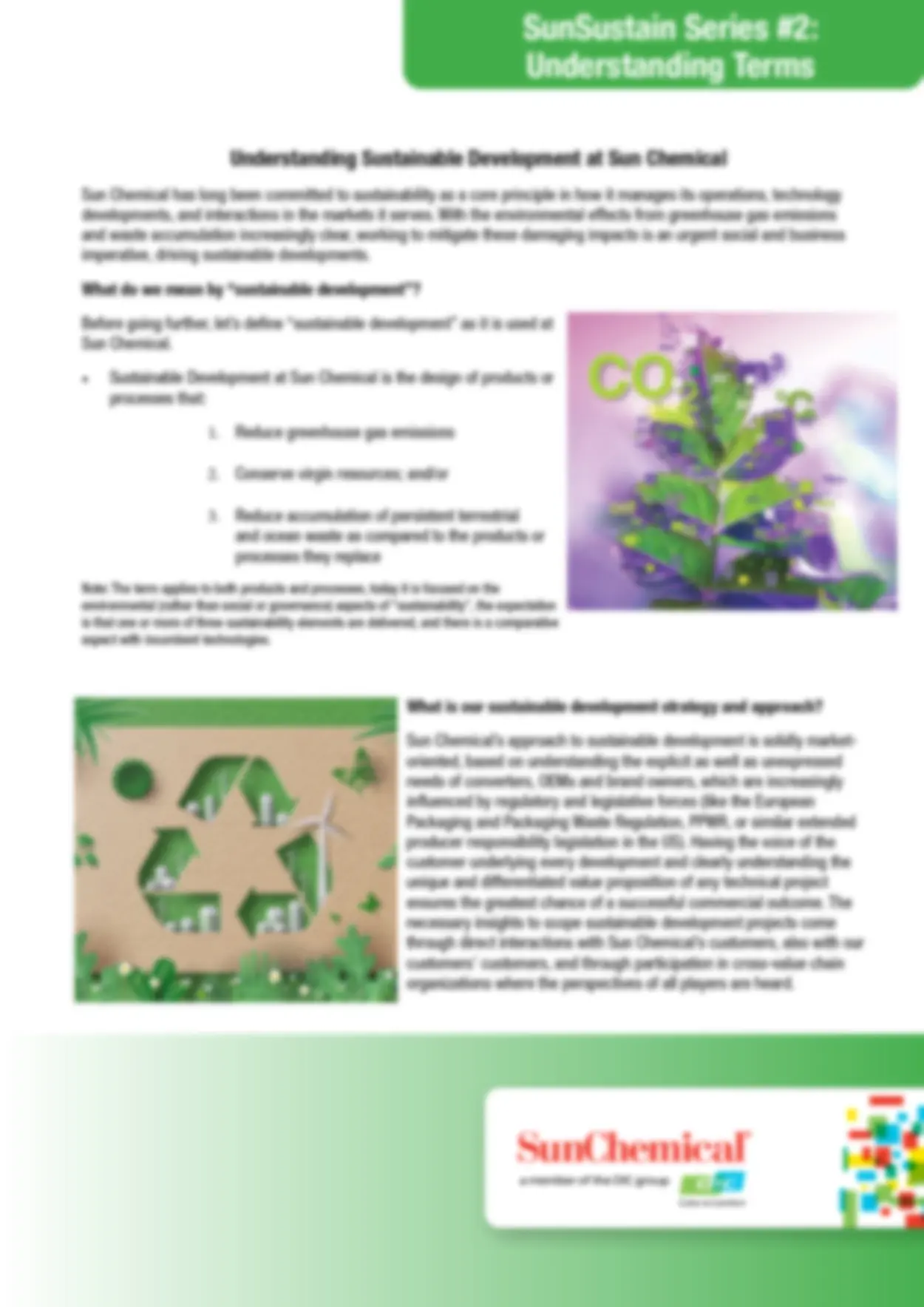 Learn how Sun Chemical defines “sustainable development” and discover our sustainable development strategy and approach by downloading our newest SunSustain Series newsletter: Understanding Terms.